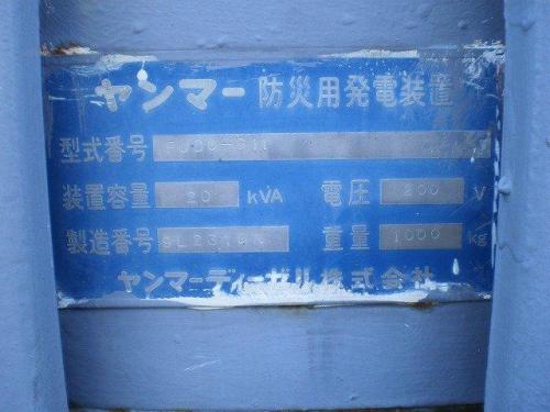 発電機【2009105】ヤンマー製中古防災用発電機FUDO-811型買取