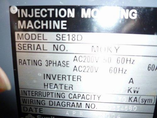 プラスチック成形機【2002002】住友重機械製電動プラスチック射出成形機SE-18-D2004年製