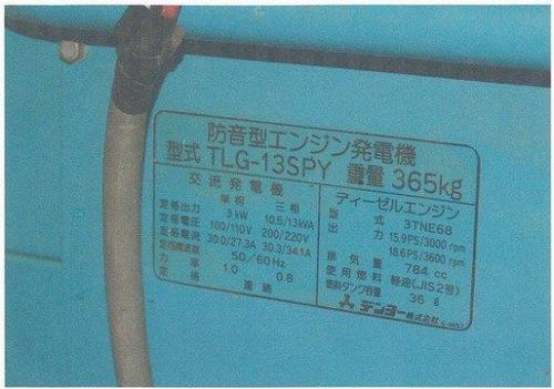 発電機【2010029】デンヨー製中古防音型エンジン発電機TTLG-13SPY型買取