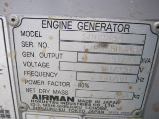 発電機【20100545】北越工業製AIRMAN SDG25買取