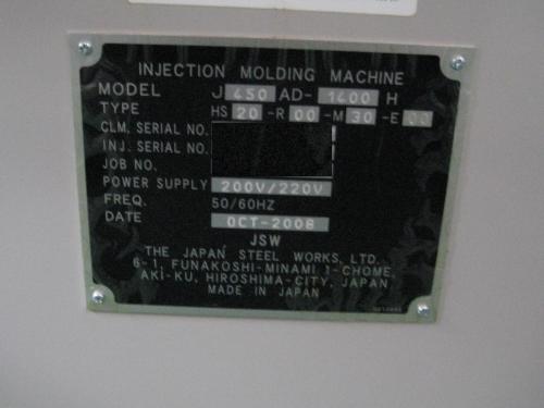 プラスチック成形機【2106071】日本製鋼所製中古プラスチック射出成形機JSW450型買取