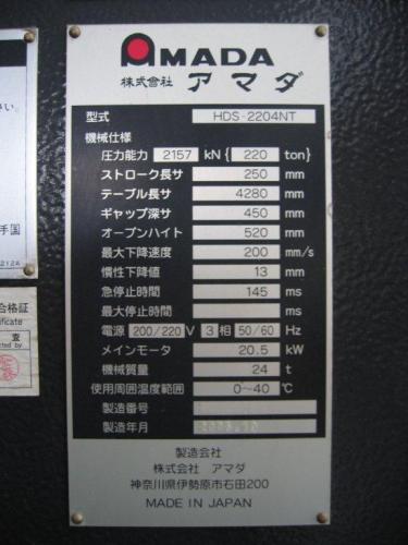 板金機械【2005001】アマダ製中古板金機械ベンダーHDS-2204NT型2005年製買取