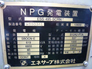 建設機械【200614】エネサーブ株式会社製建設機械 中古発電機ESS-495-SCRN2買取