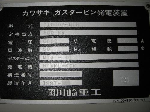 発電機【2005031】川崎重工業製中古ガスタービン発電機TI000A-BER買取