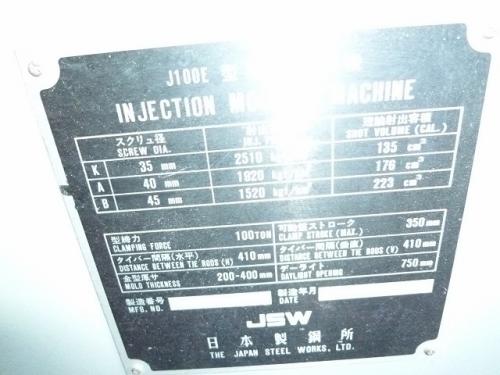 射出成形機【2008003】日本製鋼所製中古射出成形機J-100-E-C5型1991年製買取