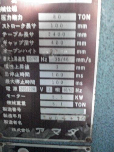 板金機械【2011028】アマダ製中古板金機械ベンダーNC-9E型1984年製買取